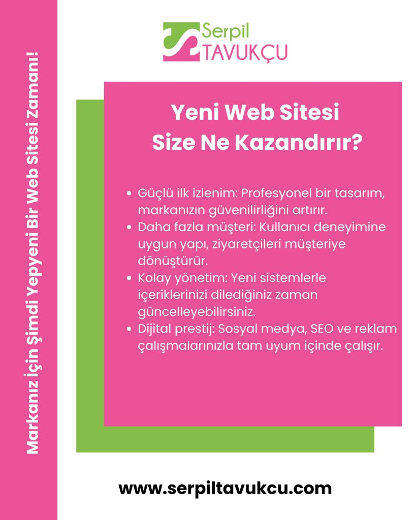 web sitesi yenileme, web tasarım, mobil uyumlu site, SEO uyumlu web sitesi, profesyonel web sitesi, dijital marka kimliği, web sitesi tasarımı, site hız optimizasyonu, web sitesi yaptırma, marka görünürlüğü